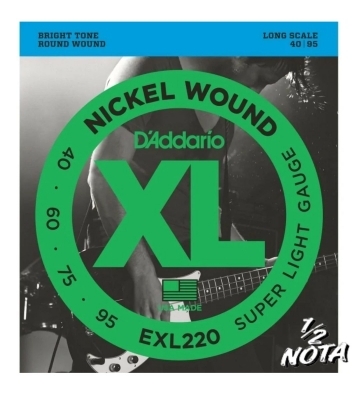 Le corde D'Addario EXL220 Super Light 40-95 offrono una maggiore flessibilità di suono rispetto a un set per basso standard. Si adattano ai bassi con lunghezza della scala che arriva fino a 92 cm.