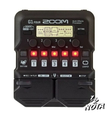 La pedaliera multi-effetto ZOOM G1 Four dispone di oltre 70 effetti e modelli di amplificatori, looper e drum machine, inoltre incluso con questo pedale c'è la possibilità di accedere gratuitamente alla libreria aggiuntiva di effetti scaricabili di ZOOM Guitar Lab. Più di 60 effetti incorporati 13 modelli di ampli per simulare gli stili classici Fino a 5 effetti simultanei Looper integrato con sampler di 30 secondi / 64 beats / Seamless start Free ZOOM Guitar Lab software Drum machine con 68 ritmi 50 slot di memoria per salvare le proprie patch Funzione Auto Save Funzione di preselezione della patch successiva Accordatore cromatico con tutti i patern standard (anche open e drop tunings) Input jack mono (compatibile con strumenti attivi passivi) Aux input Output jack (ampli o cuffie) Alimentazione con 4 batterie AA incluse (autonomia di circa 18 ore) Connessione USB per aggiornamento firmware Alimentazione (alimentatore esterno non incluso) Connessione con Guitar Lab