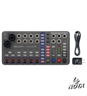 ZOOM L6 è un mixer digitale a 6 canali di ottima qualità che vi permetterà di gestire in maniera estremamente semplice le vostre sessioni live e studio. 6 canali con registrazione a 32-bit floating point Registrazione di 10 tracce più mix stereo su microSD fino a 2TB Interfaccia audio USB 12-in/4-out per PC, Mac, iOS e Android 4 pad sonori assegnabili per campionamenti o tracce preregistrate Compressore sull'uscita master con saturazione naturale Controllo DAW e modalità interfaccia audio USB Preamplificatori di alta qualità e VU meter fino a -48dB Porta USB-C per connessione e alimentazione Funzionamento con 4 batterie AA o alimentazione USB 2 canali microfono/linea su combo jack XLR con phantom 4 canali stereo su 2 jack mono ciascuno Uscita master su 2 jack TRS da 6,35 mm Uscita cuffie su jack da 6,35 mm con controllo del volume EQ a 3 bande con midrange semiparametrico 5 effetti integrati, AUX e invio al effetto interno Switch da stereo a 2x mono sui canali 3 e 4 Registrazione interna fino a 12 tracce (10 + master) Modalità interfaccia audio USB 12-in/4-out Porta microSD fino a 2TB, registrazione simultanea su SD e computer Alimentazione con 4 batterie AA o tramite porta USB Fornita con adattatore di rete AD-17 e cavo USB integrato Dimensioni: 223 mm (W) × 114 mm (D) × 46.5 mm (H) Peso: 526g