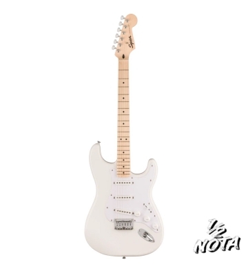 Squier Sonic Stratocaster HT MN Arctic White è una chitarra elettrica con corpo in pioppo, manico e tastiera in acero, e pickup ceramico. Serie: Squier Sonic Orientamento: Destrorso Colore: Arctic White Nazione di origine: ID Palette: Stratocaster Materiale del manico: Acero Finitura manico: Satin Urethane Forma del manico: Forma "C" Costruzione manico: Bolt-On Raggio tastiera: 9.5" (241 mm) Materiale tastiera: Acero Segnatasti: Black Dot Numero di tasti: 21 Truss Rod: Head Adjust Dado del truss rod: 4 mm Hex Capotasto: Synthetic Bone Larghezza capotasto: 1.650" (42 mm) Materiale del capotasto: Synthetic Bone Corpo: Pioppo Finitura corpo: Gloss Polyurethane Forma corpo: Stratocaster Ponte: 6-Saddle Top-Load Hardtail con Block Saddles Battipenna: 1-Ply White Manopole di controllo: White Plastic Punta levetta selettore: White Finitura hardware: Chrome Strumenti per l’accordatura: Die-Cast Sealed Corde: Nickel Plated Steel (.009-.042 Gauges) Piastra del manico: 4-Bolt Squier Reggicintura: Vintage-Style Pickup al ponte: Ceramic Single-Coil Pickup centrale: Ceramic Single-Coil Pickup al manico: Ceramic Single-Coil Configurazione dei pickup: SSS Controlli: Master Volume, Tone 1 (Neck/Middle Pickups), Tone 2 (Bridge Pickup) Switching: 5-Position Blade: Posizione 1. Pickup al ponte, Posizione 2. Pickup al ponte e centrale, Posizione 3. Pickup centrale, Posizione 4. Pickup centrale e al manico, Posizione 5. Pickup al manico