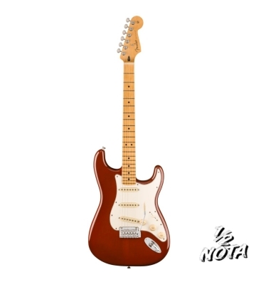 Fender Player II Stratocaster MN Transparent Mocha Burst è una chitarra elettrica con corpo in mogano, manico e tastiera in acero, e pickup Player Series Alnico 5. Serie: Player II Orientamento: Destro Colore: Transparent Mocha Burst (camerizzato) Nazione di Origine: Messico Paletta: Stile Stratocaster Materiale del manico: Acero Finitura manico: Uretano satinato sul retro, uretano lucido sulla parte frontale Forma del manico: Moderna "C" Costruzione Manico: 4 bulloni standard Raggio tastiera: 9.5" (241 mm) Materiale Tastiera: Acero Segnatasti: Puntini neri Segnaposizione Laterali: Nero Numero di tasti: 22 Truss Rod: Azione singola, regolazione dalla paletta Dado del Truss Rod: Regolazione esagonale da 3/16" Capotasto: Osso sintetico Larghezza capotasto: 1.650" (42 mm) Materiale del Capotasto: Osso sintetico Corpo: Mogano camerizzato Finitura corpo: Poliestere lucido Forma corpo: Stratocaster Stile del Corpo: Corpo solido Materiale del Corpo: Mogano camerizzato Ponte: Tremolo sincronizzato a 2 punti con selle in acciaio piegato Fissaggio Ponte: A 2 punti moderno Battipenna: 3 strati pergamena Coperture Pickup: Bianco invecchiato Manopole di controllo: Plastica bianca invecchiata Punta Levetta Selettore: Bianca invecchiata Finitura hardware: Nichel/Cromo Strumenti per l’accordatura: Fender ClassicGear Alberelli Abbassacorde: A singola ala Corde: Fender USA 250L in acciaio nichelato (calibro .009-.042), PN 0730250403 Leva del Vibrato: Leva del tremolo standard Piastra del Manico: 4 bulloni con logo "F" Reggicinghia: Standard Pickup al ponte: Player Series Alnico 5 Strat Single-Coil Pickup centrale: Player Series Alnico 5 Strat Single-Coil Pickup al manico: Player Series Alnico 5 Strat Single-Coil Configurazione del pickup: SSS