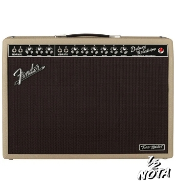 Fender Tone Master Deluxe Reverb Blonde è un amplificatore combo da 100W e un cono da 12". Potenza: 100W a 8Ω (simula le prestazioni dell'amplificatore a valvole da 22W) Canali: 2 (Normale e Vibrato) Ingressi: 4x 1/4" (due normali e due vibrati) Effetti: Riverbero, Tremolo Line Out: 1x XLR bilanciato con Ground Lift e Level Control Materiale del cabinet: Pino massello leggero Copertura dell'amplificatore: Vinile strutturato nero Griglia: Argento Manico: Cinturino in plastica stampata con calotte placcate in nichel Altoparlanti: 1x 12" Celestion NEO Creamback Impedenza: 8 Ohm Pedale: Footswitch a 2 pulsanti incluso Dimensioni: 432 x 612 x 236mm Peso: 10,4kg