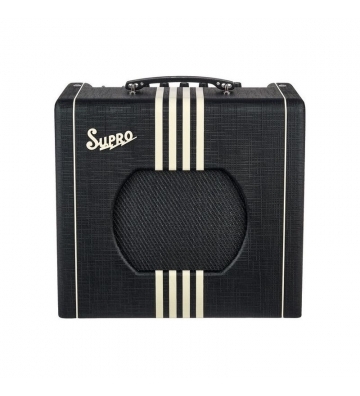 Supro Delta King 10 Black & Cream è un combo da 5 watt per chitarra elettrica, un amplificatore interamente valvolare con cono da 10" e riverbero a molla, perfetto per lo studio, il palcoscenico e come ampli da casa.