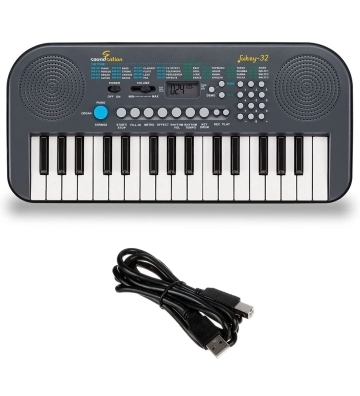 Soundsation JUKEY 32 è una tastiera musicale a 32 tasto di dimensioni ridotte, strumento ideale per i bambini in età scolastica, compatta, leggera facile da trasportare, funziona con 6 batterie 1.5AA o con un alimentatore USB (non inclusi), cavetto USB in dotazione.