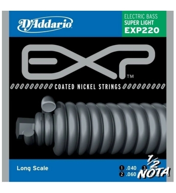 D'Addario EXP220 Super Light 40-95 è un set per basso elettrico che offre la giusta combinazione tra timbri decisi e brillanti e buona esecuzione. Super Soft, corde EXP Coated nickelplated steel per un tono brillante e con una vita 4 volte più lunga Adatto a bassi di lunga scala, di massimo 36 1/4 pollici Made in U.S.A. per la massima qualità e prestazione Scalatura: Wound .040, .060, .075, .095