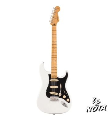 Fender Player II Stratocaster MN Aquatone Blue è una chitarra elettrica con corpo in ontano, manico e tastiera in acero, e pickup Alnico 5. Serie: Player II Orientamento: Destrorso Colore: Aquatone Blue Nazione di origine: MX Paletta: Stratocaster Materiale del manico: Acero Finitura manico: Finitura satinata in Urethane sul retro, finitura lucida in Urethane sul fronte Forma del manico: Modern "C" Costruzione manico: 4-bolt standard Raggio tastiera: 9.5" (241 mm) Materiale tastiera: Acero Segnatasti: Punto nero Segnaposizione laterali: Nero Numero di tasti: 22 Truss Rod: Azione singola, regolazione dalla testa Dado del Truss Rod: Regolazione esagonale 3/16" Capotasto: Osso sintetico Larghezza capotasto: 1.650" (42 mm) Materiale del capotasto: Osso sintetico Corpo: Ontano Finitura corpo: Gloss Polyester Forma corpo: Stratocaster Stile del corpo: Solid body Materiale del corpo: Ontano Ponte: Tremolo sincronizzato a 2 punti con selle in acciaio piegate Fissaggio ponte: 2-Point Modern Battipenna: 3-ply Parchment Coperchi pickup: Bianco invecchiato Manopole di controllo: Plastica bianca invecchiata Punta levetta selettore: Bianco invecchiato Finitura hardware: Nickel/Chrome Strumenti per l’accordatura: Fender ClassicGear Alberelli abbassacorde: Single-Wing Corde: Fender USA 250L Nickel Plated Steel (.009-.042 Gauges) Leva del vibrato: Standard Tremolo Arm Piastra del manico: 4-bolt con logo "F" Reggicinghia: Standard Pickup al ponte: Player Series Alnico 5 Strat Single-Coil Pickup centrale: Player Series Alnico 5 Strat Single-Coil Pickup al manico: Player Series Alnico 5 Strat Single-Coil Configurazione del pickup: SSS Controlli: Master Volume, Tone 1 (Neck/Middle Pickups), Tone 2 (Bridge Pickup) Switching: 5-Position Blade: Position 1. Pickup al ponte, Position 2. Pickup al ponte e centrale, Position 3. Pickup centrale, Position 4. Pickup centrale e al manico, Position 5. Pickup al manico