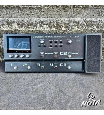 BOSS GX-100 è un multieffetto per chitarra e basso con 23 amplificatori AIRD e oltre 150 effetti per creare suoni eccezionali di qualità elevata in pochi secondi grazie all'intuitivo display touch a colori. Pedale multieffetto per chitarra elettrica e basso Autentico suono dell'amplificatore valvolare con risposta realistica grazie alla tecnologia AIRD 200 posizioni di memoria 23 tipi di amplificatori e oltre 150 effetti BOSS Routing versatile di amplificatori/effetti con 15 blocchi assegnabili Numerosi tipi di altoparlanti e possibilità di importazione delle proprie risposte all'impulso WAV Interruttore a pedale di controllo integrato assegnabile individualmente e pedale di espressione con interruttore a punta Send/return loop per pedali esterni in configurazioni a quattro cavi Uscita dell'interruttore di controllo dell'amplificatore Editing al computer con BOSS Tone Studio per macOS e Windows Adattatore Bluetooth Audio MIDI Dual opzionale per l'editing di suoni e lo streaming audio tramite dispositivi mobili iOS e Android (non incluso) Controlli: 1,2,3,4, Seleziona, Livello di uscita Pulsanti: Pagina Su/Giù, Effetti, CTL/EXP, Menu/Esci, Scrivi, Impostazioni In/Out Interruttore: Ground Lift LED: 1, 2, 3, 4, C1, banco su/giù, C2/sintonizzatore, EXP 1 SW Foot switch: 1, 2, 3, 4, C1, Bank Up/Down, C2/Tuner, EXP 1 SW Ingresso: jack da 6,3 mm Uscita sinistra e destra: 2 jack da 6,3 mm Uscita cuffie: jack stereo da 6,3 mm FX Send & Return: 2 jack da 6,3 mm AMP CTL 1, 2: jack stereo da 6,3 mm CTL 3,4/EXP 2: jack stereo da 6,3 mm Entrata e uscita Midi Collegamento dell'adattatore di rete: spina femmina cava 5,5 x 2,1 mm, polo negativo all'interno Consumo energetico: 1200 mA Alimentazione con adattatore di rete PSB-1U 9 V CC (incluso) Dimensioni (L x P x A): 490 x 193 x 73 mm Peso: 3,5 kg